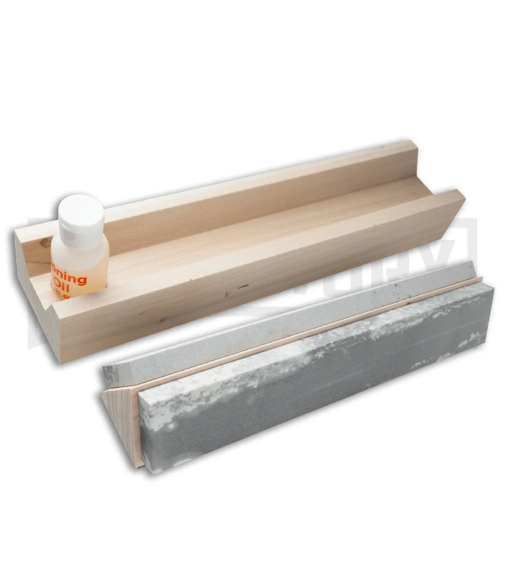 This Arkansas sharpening stone set is made from Novaculite rock which has been prized for centuries for its excellent sharpening properties. This rare stone is found in one area of Arkansas, and will provide the sharpest blade edges and points possible. The 10″ trihone sharpener includes fine, medium and coarse grit Arkansas stones, in a rotating wood block with a 23 degree sharpening guide. It also includes some honing oil to get you started. Once you experience the fine blade edges Arkansas sharpening stones can provide you’ll never go back to anything else.