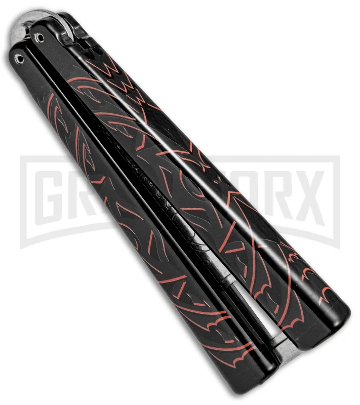 Super Knife Black Balisong Butterfly Knife Dragon – Tanto Satin