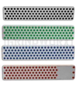 DMT gives you this excellent set for sharpening all your knives and tools. It includes four different textures (extra fine, fine, coarse, extra coarse) in easy to manage sizes (4.375″ x 0.875″). Starting with the extra coarse whetstone and working in succession down to extra fine, you can produce an exceptional edge on knives, scissors, and other straight-edged tools. Comes with a black nylon carry sheath to keep your whetstones in their best condition.