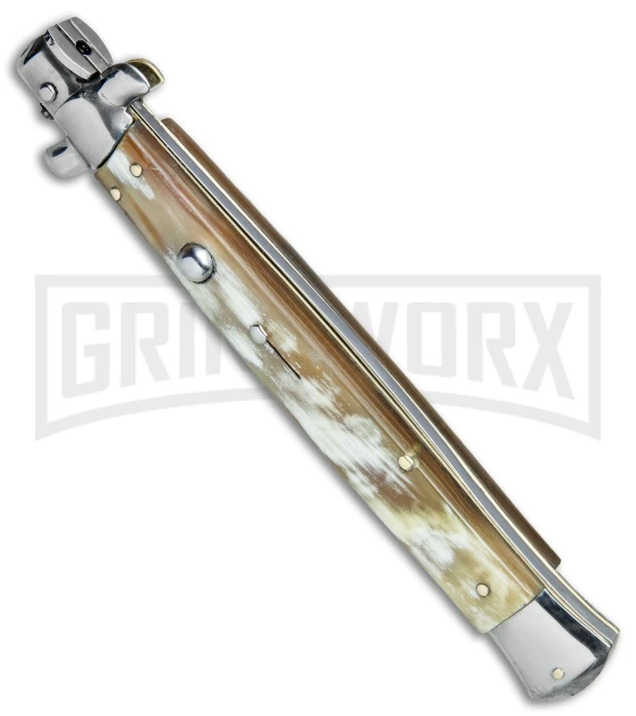 AGA 6″ Mini Classic Lever Lock Dark Horn Automatic Knife – Satin Plain