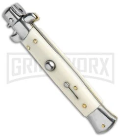 8″ Leverlock Sim Ivory Automatic Knife – Bayonet Satin Plain
