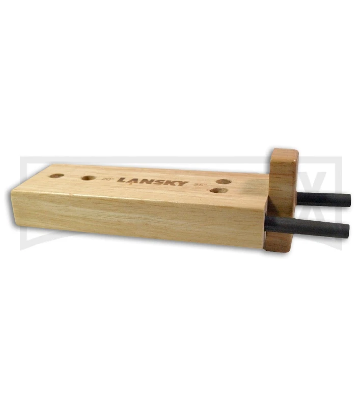 This Deluxe Turn-Box Crock Stick sharpener from Lansky has a wooden base with two pre-set sharpening angles. It includes four 5″ alumina ceramic sharpening rods, 2 medium and 2 fine. The rods conveniently slide into the base for storage and protection using the unique turn-box design. This is a great sharpening system that is super easy to transport and use on the go.