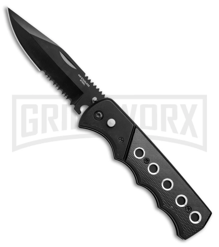 Be the first to review “Orpheus Black Automatic Knife – Black Serr” Cancel reply