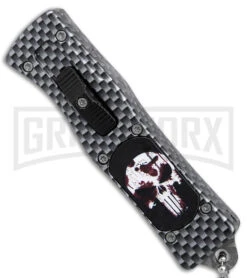 Skull Mini Dog Tag Gray Black Carbon Fiber D/A OTF Automatic Knife – Satin Plain