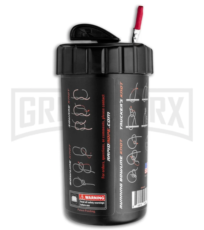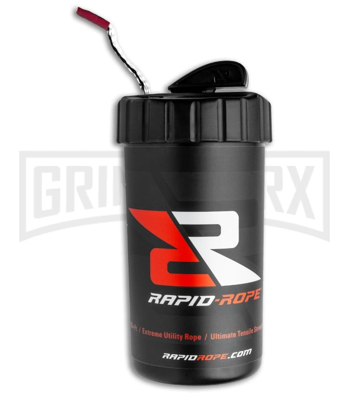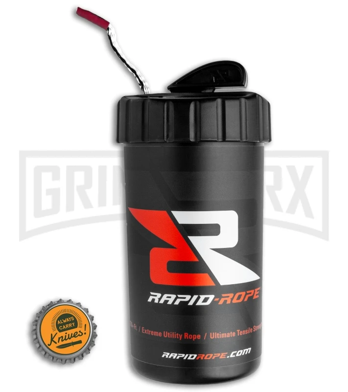 This white Rapid Rope is an easy-to-use source of a ton of high-tensile-strength rope. The rope is made to withstand a 1100-pound working load, and it stows away neatly inside the cup. The lid of the cup has an integrated blade that cleanly cuts the rope, and holds the end secure afterward. The Rapid Rope is a must-have in any car, boat, or bag.