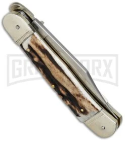 Hubertus 7″ Pistol Lever Lock Stag Horn Automatic Knife – Satin Plain