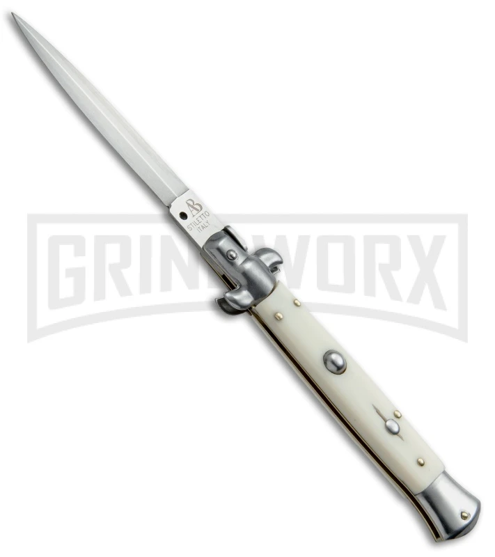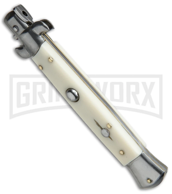 Frank B. 9″ Italian Stiletto Simulated Ivory Automatic Knife – Bayonet